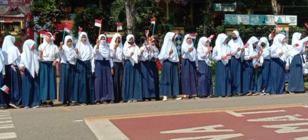 Siswa SMPN 2 Malili Antusias Sambut Kirab Pelajar SMA/SMK Lutim